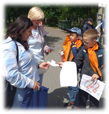 22 июня дети вышли в Березовую рощу для возложения цветов к монументу воинам, умершим от ран в госпиталях Новосибирска в годы Отечественной войны, и провели акцию «Голубь мира», где раздавали прохожим самодельных голубей.