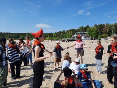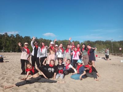 В Декаду пожилого человека в группах придумали и создали открытки-плакаты поздравления и расклеили на подъездах ближайших домов, чем вызвали улыбки прохожих. Сотрудничество с ученицей-старшеклассницей позволило вспомнить подвижные игры советского детства, вдохновившись рассказами о детской пионерской организации. Позвали Елизавету на пикник, где ребята не только играли, но и познакомились с атрибутикой. Кстати, очень удобно ехать в городском транспорте.