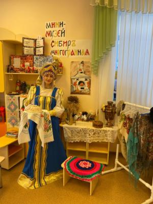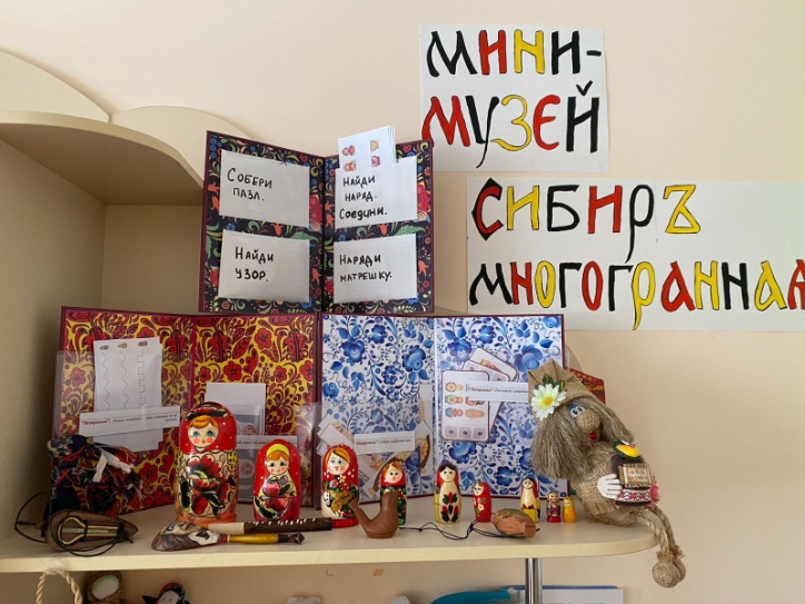 В связи с этим, при моем участии был организован уголок мини-музей «Сибирь многогранная», где были представлены традиционные куклы – матрешки, народные игрушки, посуда, оформленная в различных стилях народной росписи: гжель, хохлома и т.д.