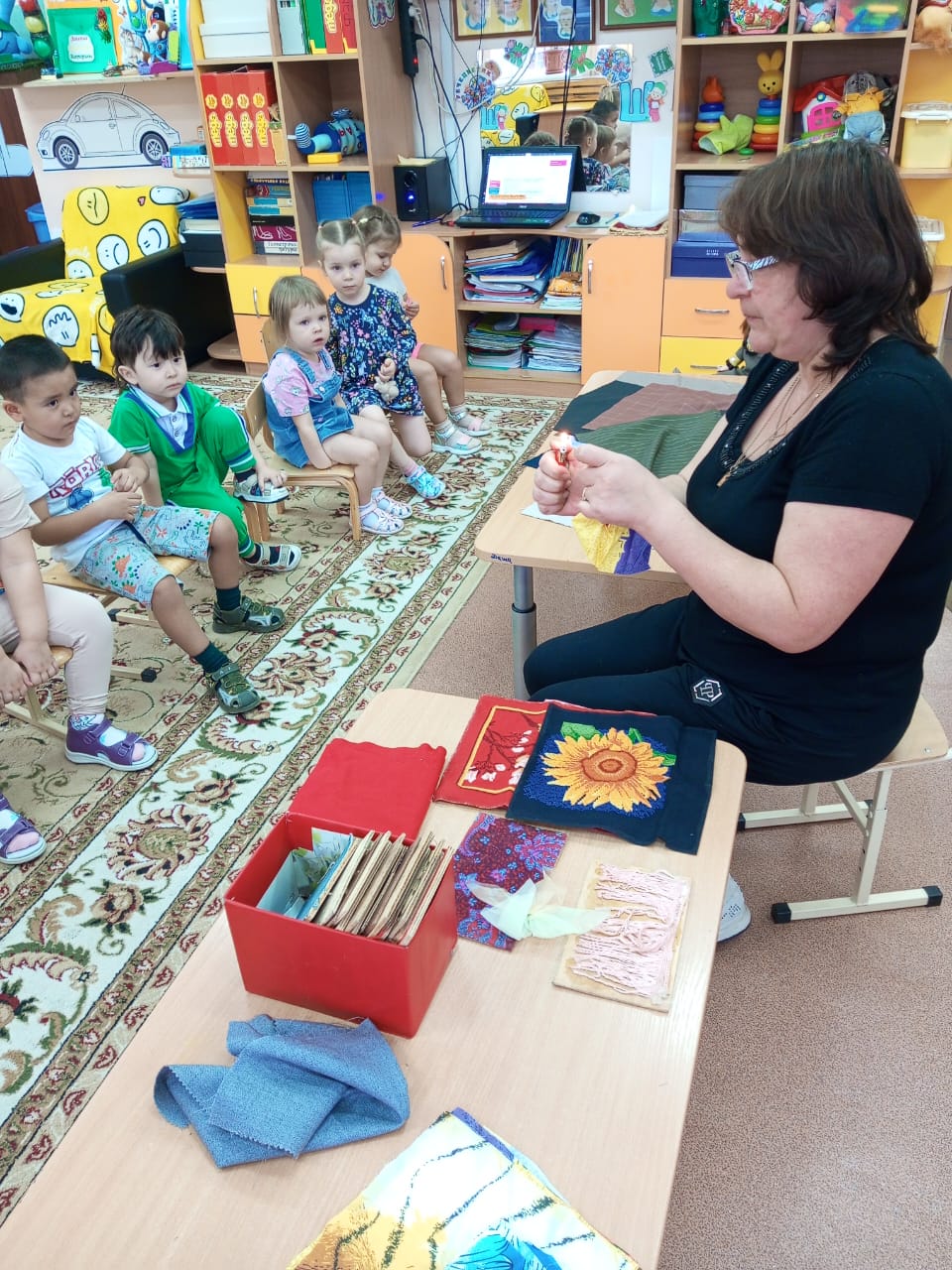 В течение месяца мы проводили беседы на тему «Коренные жители Сибири» с рассматриванием альбома «Народные музыкальные инструменты Сибири», «Чулымцы». Особый интерес у детей вызвала экспериментальная деятельность: дети изучали различные виды ткани (в том числе и одежду, изготовленную из меха и кожи) и их свойства.