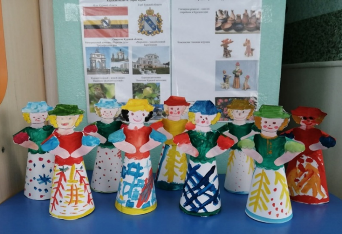 В итоге мы с детьми узнали о символах и достопримечательностях Курского края – о Курском соловье и курском яблоке, о Кожлянской глиняной игрушке – свистульке. Познакомились со знаменитыми елецкими кружевами и золотой хохломой Липецкой области, а также символами Северной Осетии – барсом, который изображен на гербе региона, народными костюмами, изделиями из металла и красивой резьбой по дереву и др. Познакомились с единомышленниками эколятами-дошколятами из Курска и Самары.
