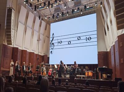 Осваивая пространство зала: стены, интерактивный пол, дети постигают азы нотной грамоты, воспроизводят ритмический рисунок, придуманный детьми.