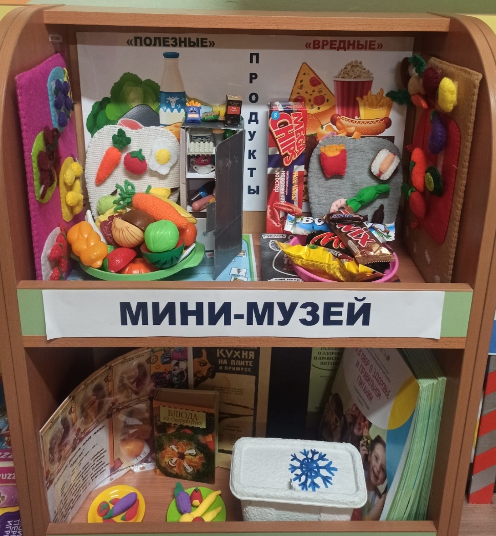 Также благодаря нашему музею дети стали отмечать для себя полезные и вредные продукты. Мини-музей дополнил и обогатил нашу работу по программе «Разговор о правильном питании».
