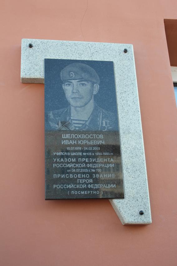 Школа № 105 особо чтит память своих выпускников – Героя России Ивана Шелохвостова и кавалера ордена Мужества Андрея Полухина. В День Героев Отечества 9 декабря 2022 года на фасаде образовательного учреждения установили героям-выпускникам мемориальные доски.