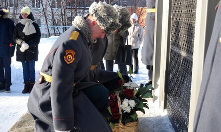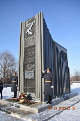 После открытия мемориала, традиционной минуты молчания курсанты клуба, учащиеся и гости возложили цветы.