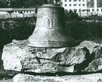 На гранитном камне под колоколом были установлены якорь с якорной цепью и памятная мраморная плита: «Под звон этого колокола уходили из Екатерининской гавани в северные широты знаменитые полярные экспедиции А. Толля (1900), В. Русанова (1912), Г. Брусилова (1912)». Автор «Двух капитанов» написал тогда: «Спасибо за памятник, единственный в своем роде».