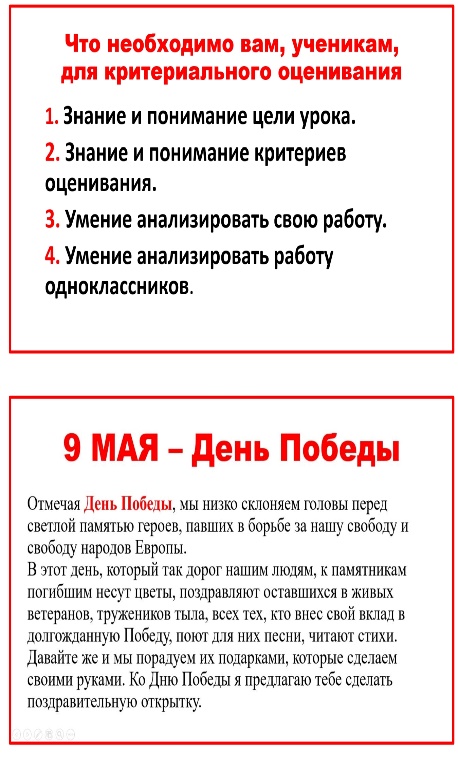 Применение элементов формирующего оценивания. Ознакомление с критериями оценивания и с Памяткой для критериального оценивания. |