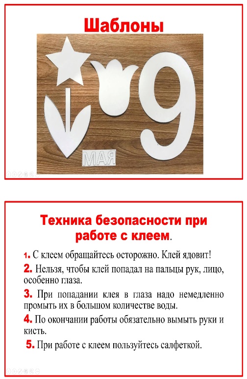 1. Повышать интерес к истории России, воспитывать чувство патриотизма, уважение к ветеранам. 2. Способствовать развитию творческих способностей детей. 3. Развивать зрительное восприятие, глазомер, зрительно-моторную координацию, мелкую моторику. 4. Воспитать аккуратность, терпеливость в достижении результата, художественный вкус, умение видеть красоту. |