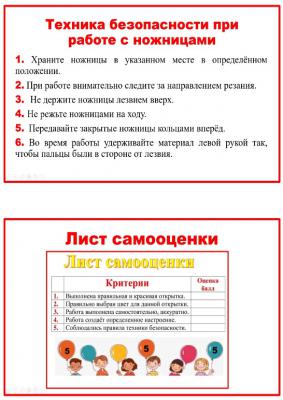 Получение представлений о нравственном значении труда в жизни человека и общества; овладение технологическими приемами ручной обработки материалов. Усвоение правил техники безопасности. Использование приобретенных знаний и умений для творческого решения несложных художественно-конструкторских технологических и организационных задач. Закрепить понятие «аппликация». Закрепить навыки работы с бумагой, клеем и ножницами. Умение самостоятельно определять цели своего обучения, ставить и формулировать для себя новые задачи в учёбе и познавательной деятельности. Умение соотносить свои действия с планируемыми результатами, осуществлять контроль своей деятельности в процессе достижения результата. Развивать умение слушать и понимать других. Умение организовывать учебное сотрудничество и совместную деятельность с учителем и сверстниками. Работать индивидуально. Соблюдать правила общения. Формулировать свое мнение. Организовывать учебное взаимодействие в паре. Принимать учебную задачу, понимать план действий, придумывать и воплощать оригинальный замысел предстоящей работы. Удерживать цель деятельности до получения ее результата при практической деятельности. Определять и формулировать тему и цель урока. Самостоятельно организовывать свое рабочее место. Проговаривать последовательность действий на уроке. Формирование коммуникативной компетентности в общении и сотрудничестве со сверстниками, проявляют интерес и терпение к урокам трудового обучения. Способствовать развитию творческих способностей детей. Объяснять самому себе личные качества, результаты. |