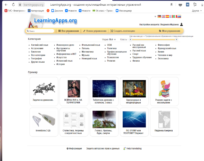 Сервис бесплатный как для создания, так и для использования готовых упражнений. Он представлен на 6 языках: английском, немецком, итальянском, французском, испанском и русском – и предлагает огромную коллекцию готовых упражнений, которые разделены по различным предметам.