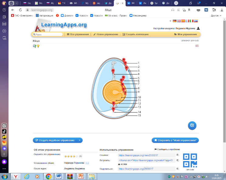 Далее целесообразно познакомиться с коллекцией готовых упражнений по предмету. Можно изучить приложения, отсортировав их, например, по оценке пользователей: сначала откроются те упражнения, которые получили более высокую оценку. Можно создавать и свои упражнения, подобные имеющимся. Для этого под каждым упражнением размещена кнопка «Создать подобное приложение». Все созданные приложения, а также упражнения, выбранные из уже готовых, сохраняются в личном кабинете (кнопка «Мои приложения»).
