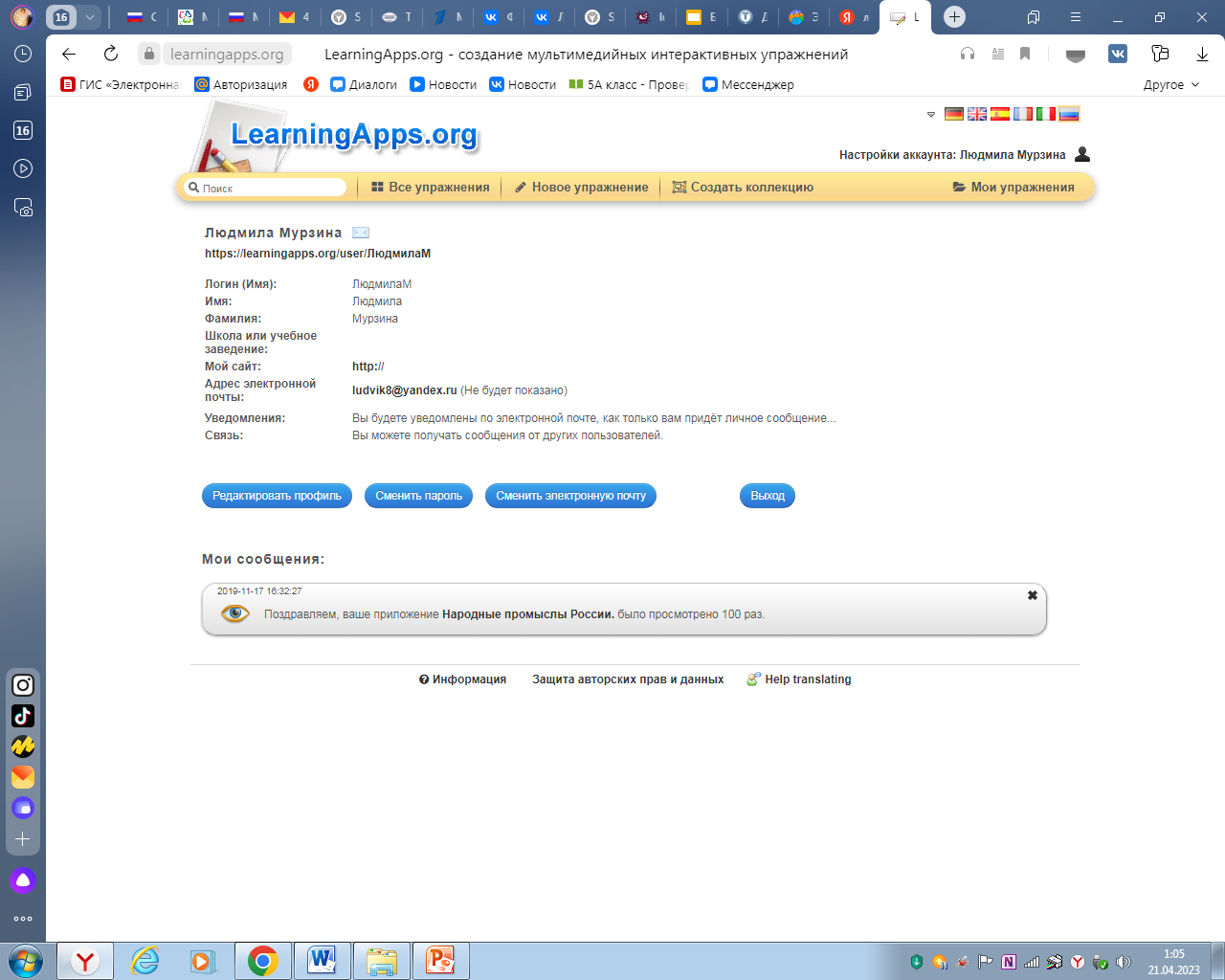 Рисунок 3. Личная страница Людмилы Мурзиной