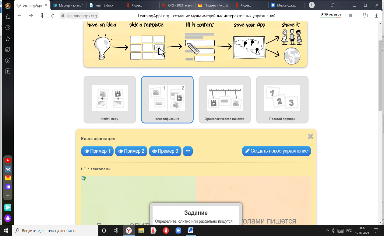 Рисунок 5. Создание нового упражнения с помощью сервиса Learningapps.org