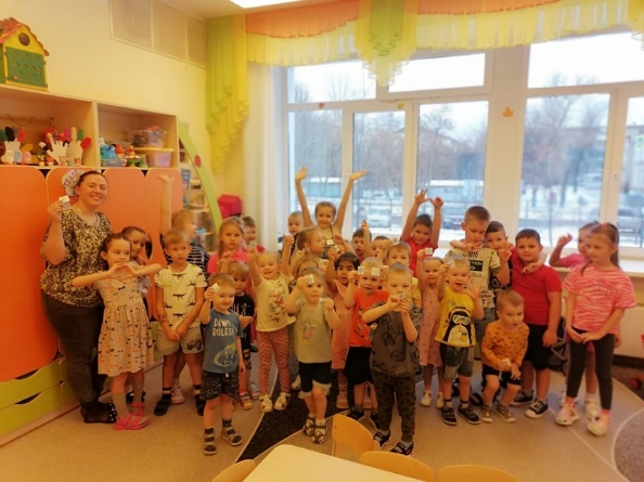 Акция «Подарок для друга». Дети подготовительных и старших групп делают подарок другу, после сна дарят малышам средних и младших групп. Это могут быть улыбочки, смайлики, смешинки или иная символика.