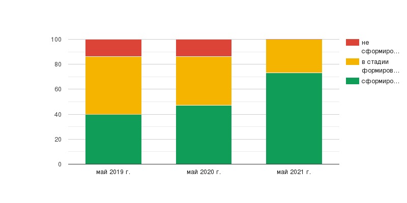 Сравнительная диаграмма показывает, что все дети к концу обучения достигли положительной динамики развития логико-математического мышления. У 73 % детей этот показатель сформирован, у 27 % в стадии формирования.