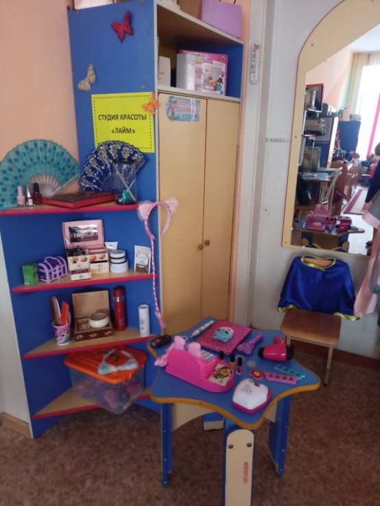 В торговом центре имеется студия красоты «Лайм». Дети играют с удовольствием и знакомятся с такими профессиями, как администратор салона, менеджер, мастер маникюра, мастер педикюра, парикмахер, визажист, косметолог.