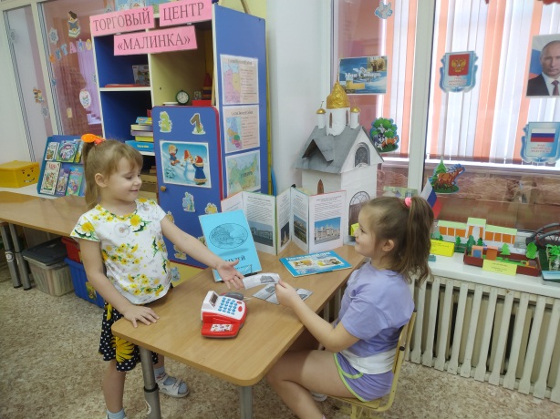 С целью создания условий, обеспечивающих формирование у детей дошкольного возраста представлений о мире профессий посредством сюжетно-ролевой игры, в нашей подготовительной группе была создана предметно-пространственная среда – «Торговый центр «Малинка».