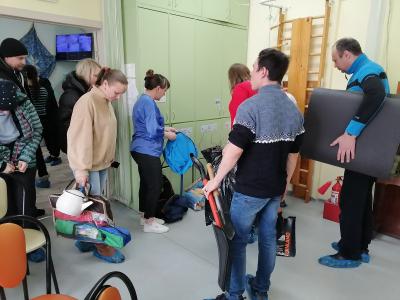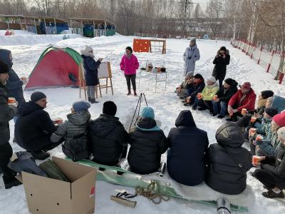 1. Приветствие, обсуждение проблемы, упражнение на командообразование «Назови соседей». После упражнения родители познакомились друг с другом, вместе посмеялись, стали более раскованные, поднялось настроение. Дальше были продемонстрированы видеоролики интервью детей, по которым родители должны были угадать, чем мы займемся дальше. Родители поняли, что дети говорят о походе. Они стали дополнять детскую речь своими яркими детскими воспоминаниями о том, как ходили в поход, что с собой брали, что готовили на костре и др. Теоретически родители полностью были готовы идти в поход, они точно знали, что для этого нужно, но даже не догадывались, что мы отправимся прямо сейчас. Какого было их удивление и восторг, когда мы показали им оборудование для похода (палатка, дрова, рюкзаки, котелки и т. д.).