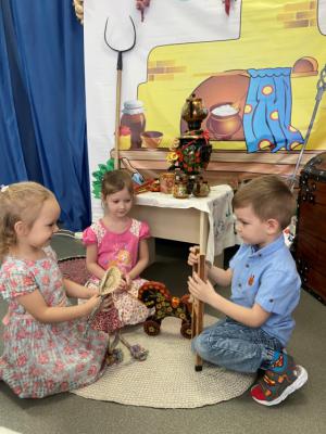 Также проводились специально-организованные занятия: «Наряды для Дуняшки и Илюшки», «Хозяйкины помощники», «Русский самовар», «Новый год у ворот!». На занятиях дети получили первоначальные знания об истории нашей Родины, жизни и быте русского народа, национальной одежде, ремеслах, праздниках и традициях.