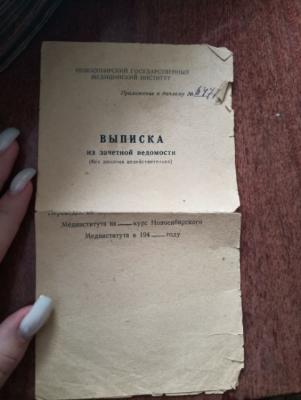 Выписка из зачетной ведомости С. Б. Добряковой в НГМИ