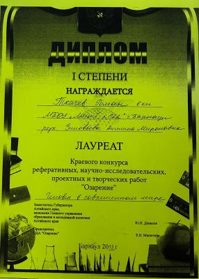 Затем по значимости идет Краевой открытый конкурс реферативных, научно-исследовательских, проектных и творческих работ обучающихся «Озарение» для школьников и студентов колледжей, техникумов, училищ Алтайского края в возрасте 6-18 лет при поддержке Центра по работе с одаренными детьми Министерства образования и науки Алтайского края. Цель конкурса – объединить усилия представителей системы образования, культуры, духовенства, органов власти и управления и всей прогрессивной общественности края для выявления талантливых детей в области науки и творчества. Задачи конкурса более обширны: создание условий для развития и поддержки юных ученых; содействие в профессиональной ориентации; формирование у подрастающего поколения патриотических, морально-нравственных ценностей, активной жизненной и гражданской позиции; возрождение связи поколений с культурным и духовным наследием своего народа; содействие творческому росту талантливых авторов и исполнителей, танцевальных и музыкальных коллективов, чтецов стихов и т.п.