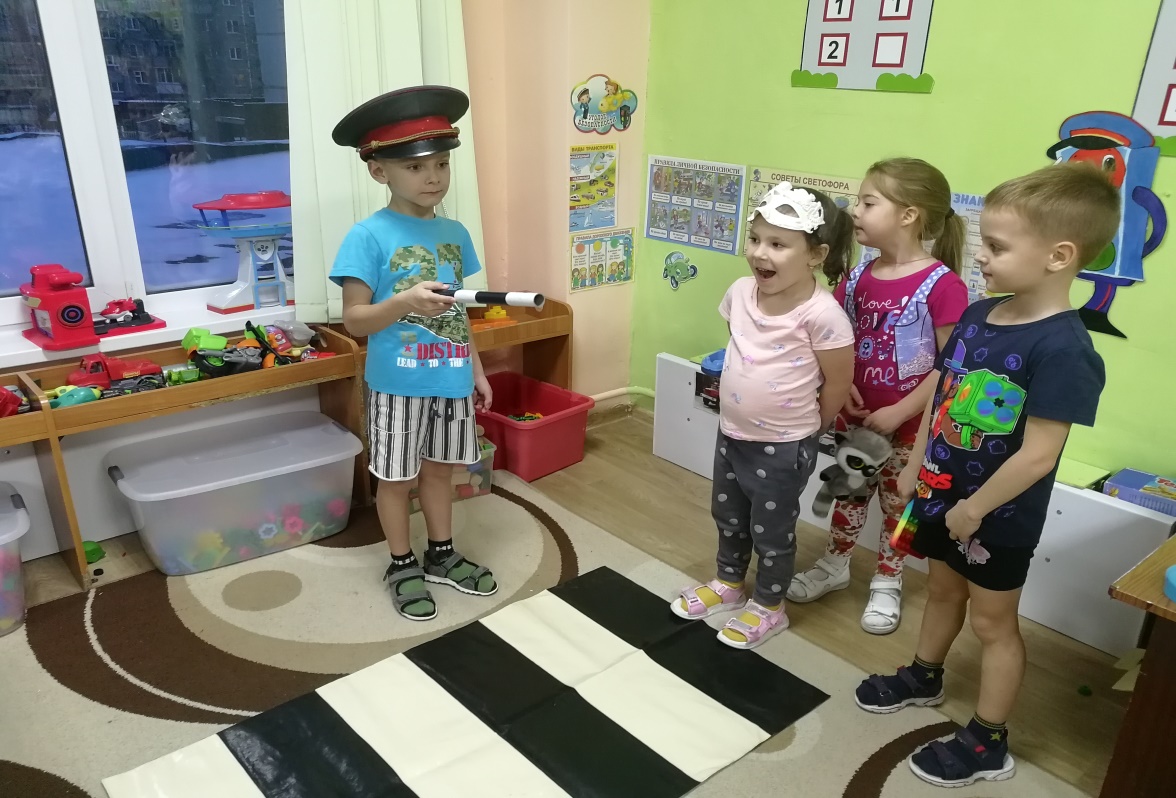 Дети знают, что машины движутся по проезжей части улицы, а пешеходы по тротуару. Уверенно распознают все виды транспорта и способы их передвижения. Дети знают безопасный маршрут от детского сада до дома.