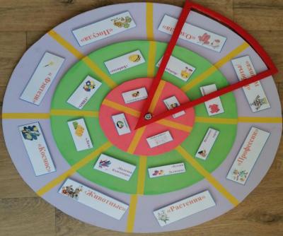 На большом нижнем круге расположены лексические темы: «Животные», «Космос», «Профессии», «Роботы-техника», «Посуда», «Растения», «Одежда», «Фэнтези».