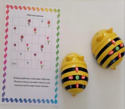 Сектор «Биботы» – ребенку предлагается запрограммировать пчелку. Используются как уже имеющиеся поля, так и вновь созданные детьми.