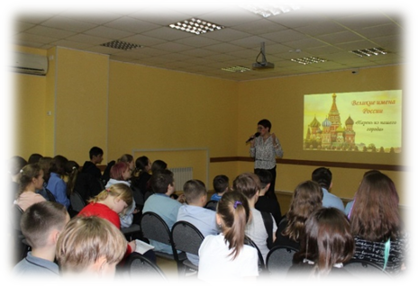 В рамках педагогических проектов «Страна книг» и «Литературные открытия» учащиеся активное посещают тематические мероприятия патриотической направленности в детской библиотеке имени Льва Кассиля и имени Максим Горького. Такие мероприятия, как Час памяти «Шагнувшая в бессмертие», краеведческий час «Вот она какая сторона родная», час мужества «Жестокая правда войны», историческое путешествие «Кружева славянской речи» и многие другие помогают детям развивать кругозор, речь, словарный запас, учат любить свою страну, свою Родину, формируют интерес к чтению и развивают интеллект.