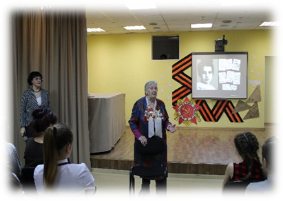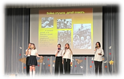 Одним из особо волнительных мероприятий в рамках данной программы является литературно-музыкальная композиция «Дети войны», которая рассказывает о самом страшном периоде Великой Отечественной войны; о том, что пережили дети в трагические годы войны. Данное мероприятие затронуло не одно детское сердце и заставило его откликнуться на истории жизней, порой очень коротких, таких же девчонок и мальчишек, как Надя Богданова, Лёня Голиков, Зина Портнова, Марат Козей – это пример героизма для наших современных детей, это пример для подражания их человеческим качествам, таким как взаимопомощь, уважение, взаимовыручка, мужество, любовь к своей Родине.