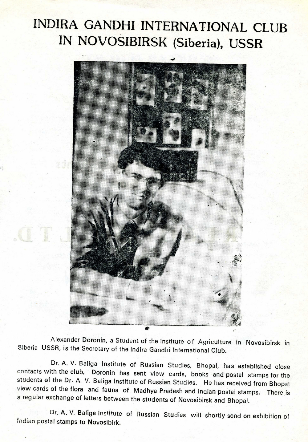 С самого начала наш Клуб интернациональной дружбы ставил своей целью не только изучение культуры Индии, но и знакомство индийцев с русским языком, с жизнью людей Советского Союза, историей и культурой нашей необъятной страны. В связи с этим в нашем Клубе постоянно проводились ребятами культурно-просветительские программы-проекты под руководством А.Ф. Доронина, посвящённые творчеству известных писателей и поэтов, выдающихся деятелей, героическим страницам жизни Советского Союза, школьные, студенческие встречи.