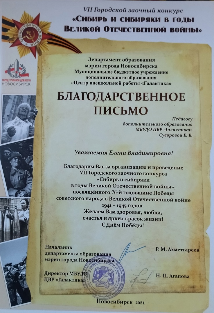 – городской заочный конкурс «Сибирь и сибиряки в годы Великой Отечественной войны. Героические страницы нашего Отечества»;