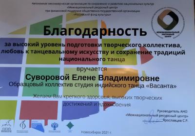 В культурно-просветительской инициативе «Международный конкурс-фестиваль индийского танца «Васанта» (проект был отмечен серебряной медалью конкурса УчСиб-2021) принимают участие учащиеся студии «Васанта», учащиеся и педагоги ЦВР, участники учреждений образования и культуры России: Москва и Московская область, Архангельск, Ростов-на-Дону, Новосибирск и Новосибирская область, Омск, Томск, Бурятия, Кемеровская область и Красноярский край, Санкт-Петербург, Казань и другие города.