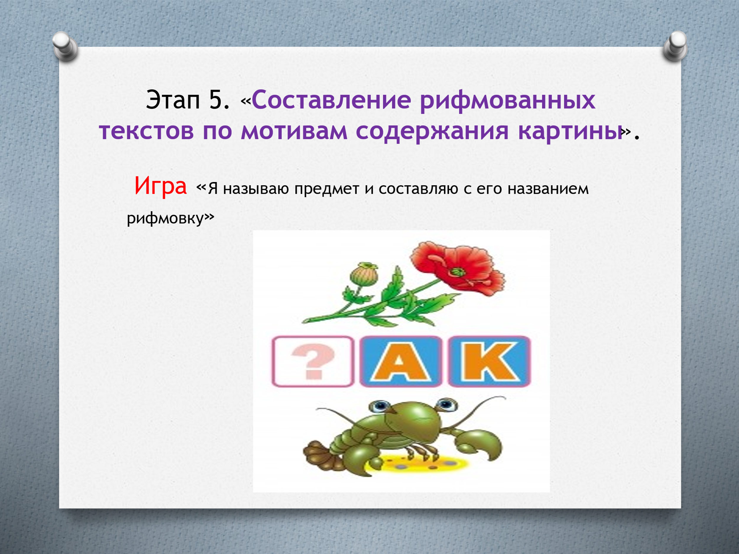 Следующая игра «Найди самое удачное название картины». Дети учатся озвучивать правило: «У каждой картины есть мудрость, правило жизни или главный смысл». Ребенок выбирает пословицу, которая может быть названием картины.