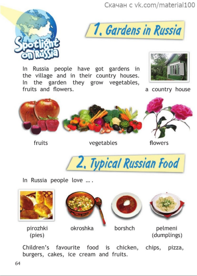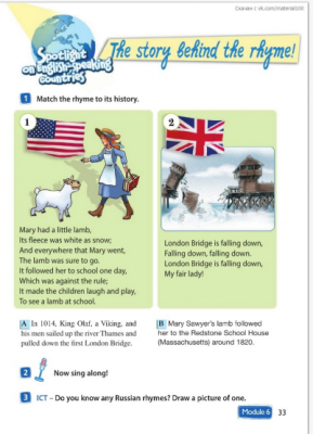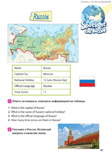 «Spotlight on Russia» – один из важнейших разделов УМК «Английский в фокусе». Изучая тексты о своей стране, собирая материал и рассказывая о родном крае, своих увлечениях и интересах, делах своего класса и школы, проблемах родного города и путях их решения, учащиеся выступают носителями своей культуры – осознают через личный опыт свою собственную культуру, проявляют гражданское и национальное самосознание.