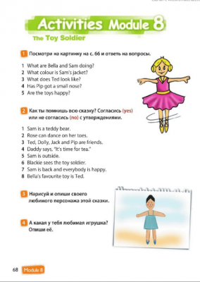 В начале каждого раздела УМК «Spotlight 2, 3, 4» обучающиеся знакомятся с новой историей из жизни главных героев учебника и их питомца – обезьянки. Забота и внимание к питомцу героев является хорошим примером для подражания.