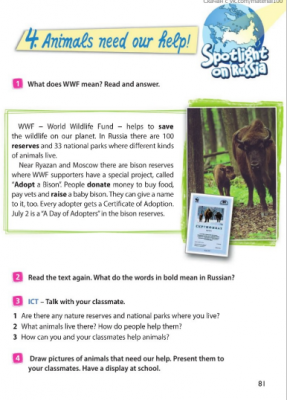 «Spotlight 2, 3, 4» содержат тексты, в которых обучающиеся знакомятся с разными животными и их средой обитания.