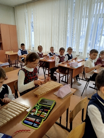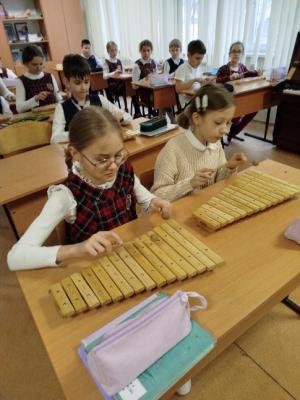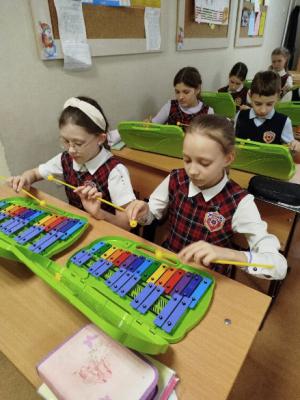 В школе, где я работаю, для каждого ребенка на уроке используются инструменты: треугольники, металлофоны, ксилофоны. С начальной школы я включаю на уроках музыки изучение нотной грамоты.