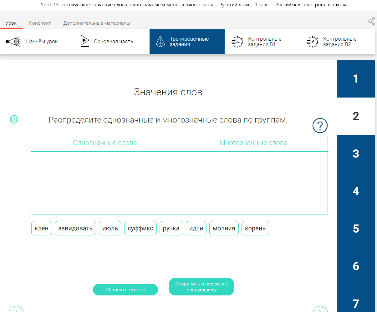 Уроки представлены по определенному алгоритму: «Начнем урок» – это мотивационная часть, с помощью которой ученики вовлекаются в урок, также на этом этапе ставятся цели и задачи рока. «Основная часть» – небольшая видеолекция, важная информация по уроку. «Тренировочные задания» – представлены задания, которые помогают лучше понять тему, разобраться с ней. «Контрольные задания» – проверка пройденного материала; задания представлены по вариантам.