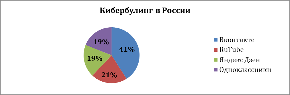 Исходя из выше представленных данных, кибербуллинг часто происходит на платформах социальных сетей, таких как «Вконтакте», «Одноклассники», «Яндекс Дзен» и «RuTube». Больше всего жестокости было отмечено на страницах «Вконтакте» (одной из самых популярных соцсетей среди подростков России) [6].
