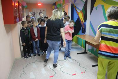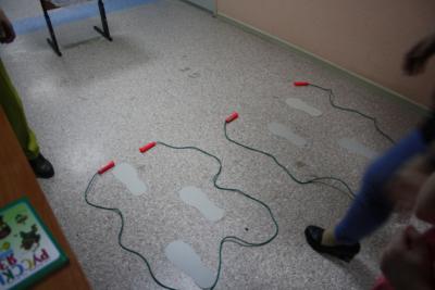 Делимся на две команды. Первая – «Жуки». Вторая – «Комары». Перед каждой командой на полу веревкой выкладываются лужи. По зеркалу лужи друг за другом кладут 10 следов. Ваша задача по очереди пройти по следам, но не обычно, а «ЖУЖЖА» – то есть долго на выдохе говорить букву «Жжжж». Вторая команда – это «Комары», также по следам идти, но только они «ЗВЕНЯТ» – долго на выдохе говорят букву «Ззззз». Потренируемся? Команда «Комаров» – «Ззззз»! Молодцы! Команда «Жуков» – «Жжжжж»! Молодцы! А теперь все вместе! Здорово! Теперь начинаем нашу звуковую эстафету! На старт... внимание... марш! Побеждает команда, первой преодолевшая лужу.