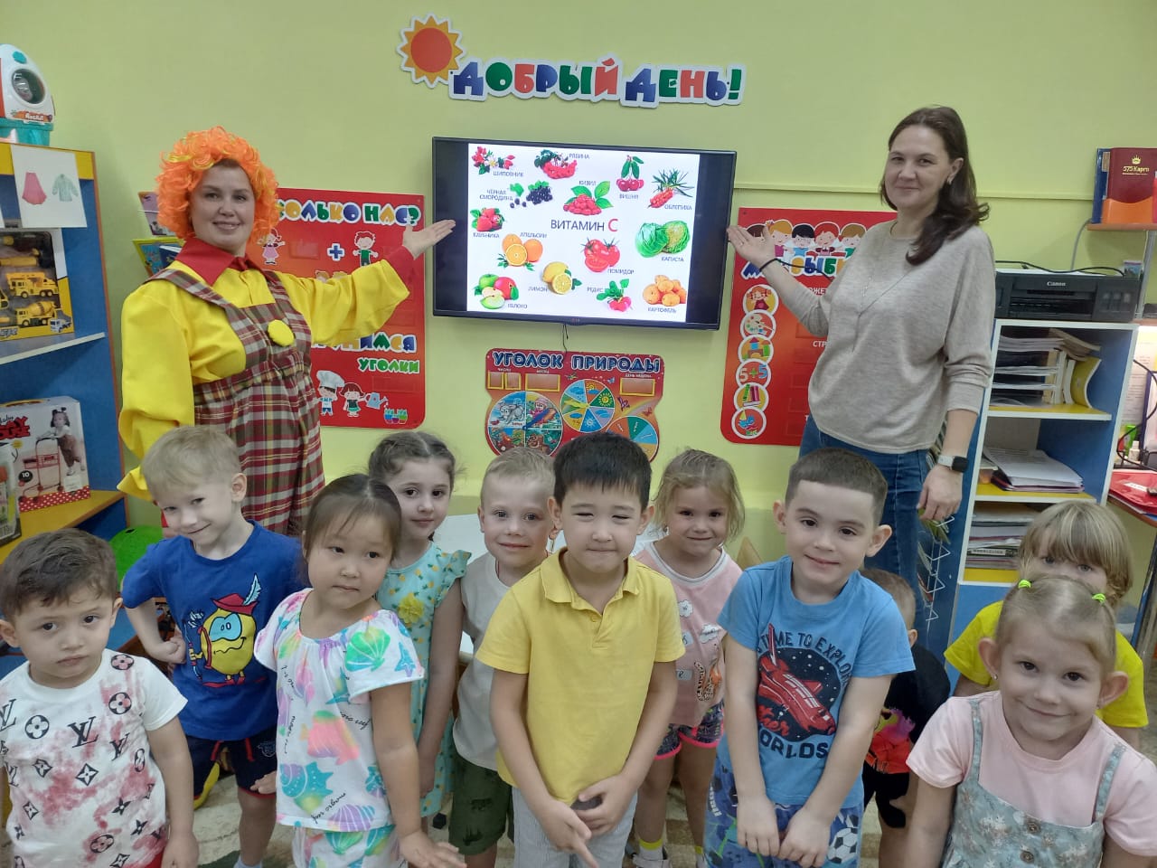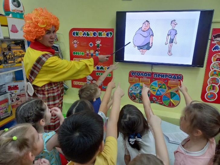 Карлсон: Ой, ребята, какие вы умнички, вы очень много нового и важного мне рассказали про правильное питание. Я теперь знаю, что сладости можно есть только иногда, а ежедневно надо есть полезные продукты, в которых много витаминов. А теперь нам нужно улетать обратно! Вам – в детский сад на вкусный и полезный обед, а мне – в мой домик на крыше.