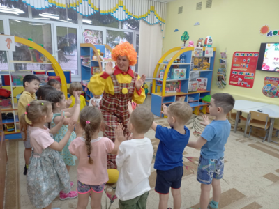 Дети пробуют дружно прокричать «Ха-ха-ха! Ха-ха-ха!».