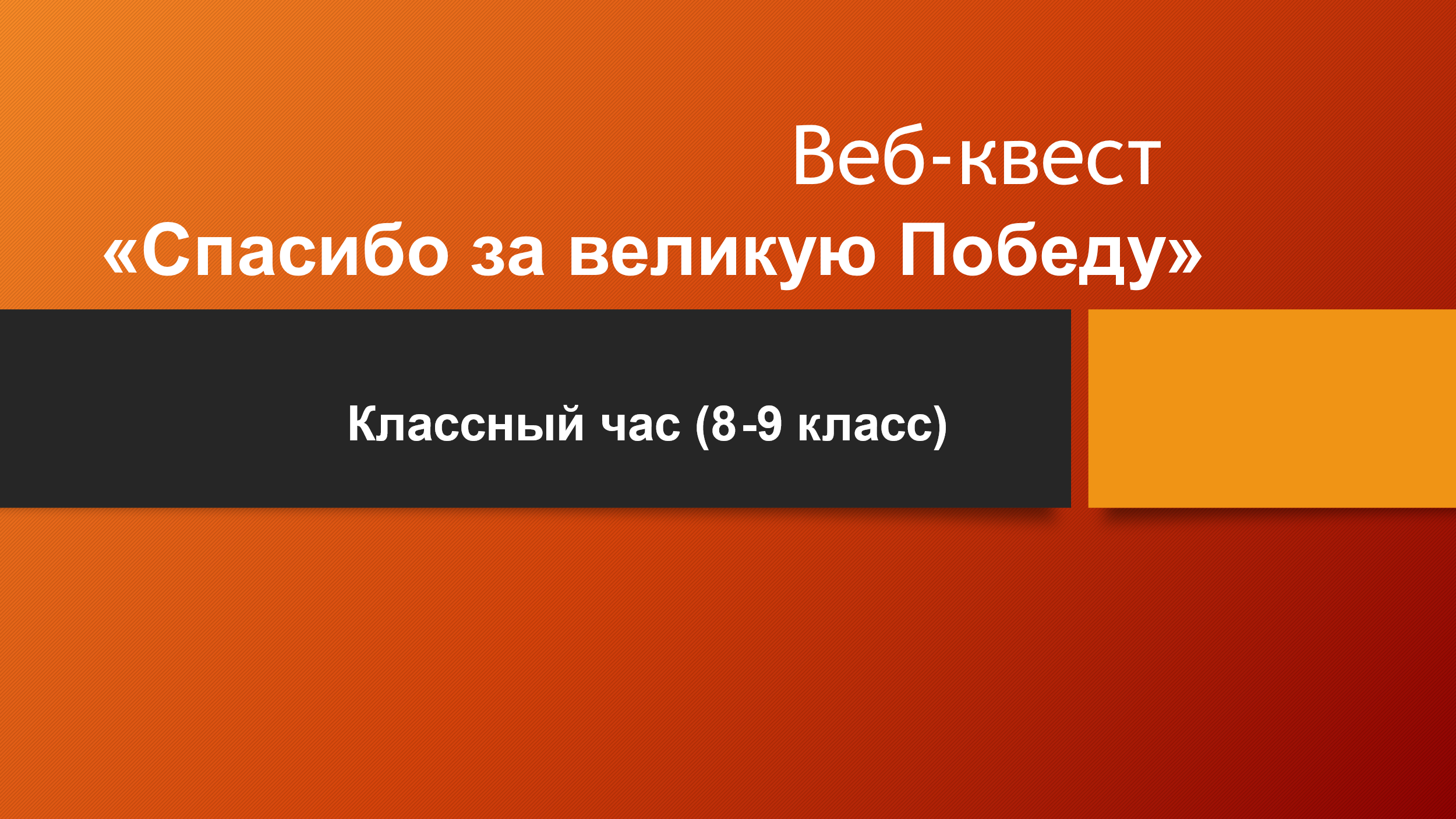 Представляю вам свою разработку веб-квеста «Спасибо за Великую Победу» для учащихся 8-9 классов.