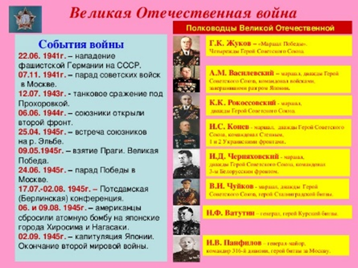 Основные события войны, рассказ о которых был представлен на классном часе: