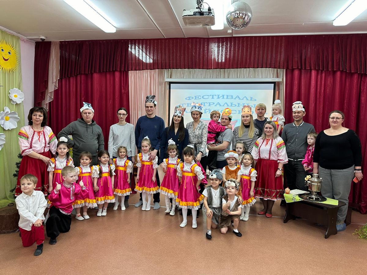 В течение года мы устраивали акции «Театр для всех» – показывали наши сказки малышам и сотрудникам детского сада. К концу учебного года мы решили показать родителям наши совместные успехи. Разработали сценарий мероприятия для детей и родителей – Фестиваль «Театральный калейдоскоп». В нем участвовали дети, воспитатели, учитель-логопед, музыкальный руководитель и родители.