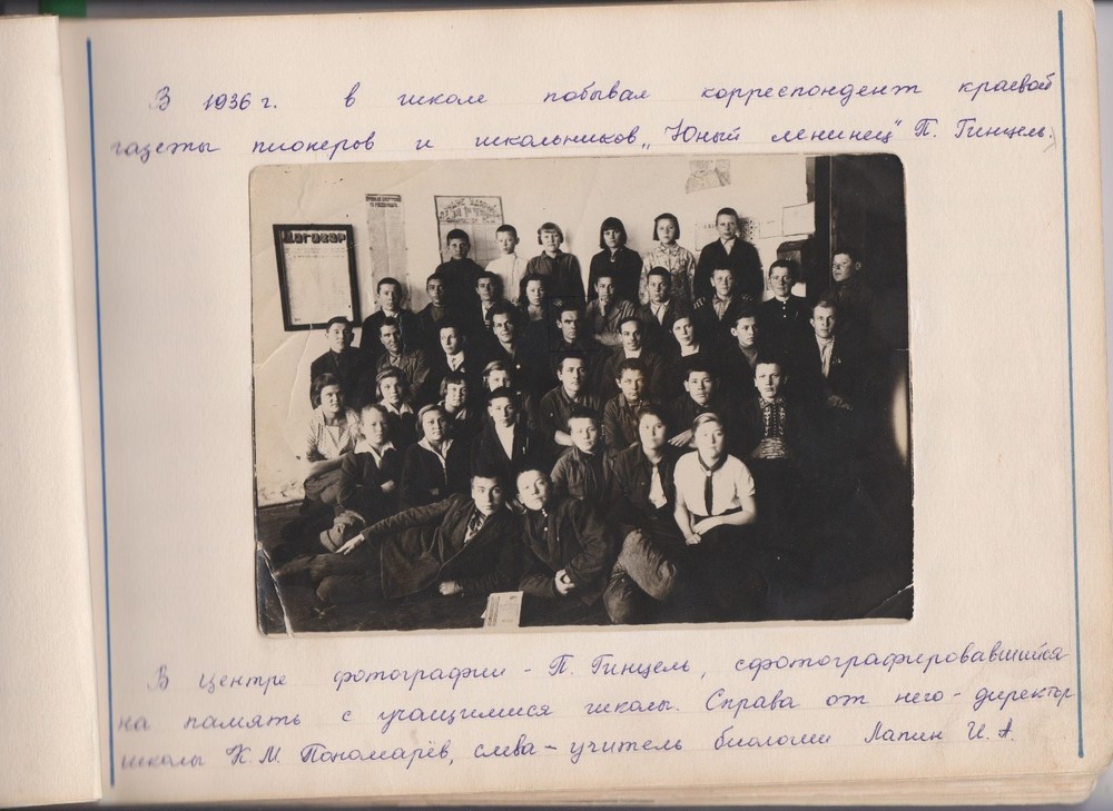 В 1936 г. школу посетил корреспондент краевой газеты «Юный Ленинец» П. Гинцель.