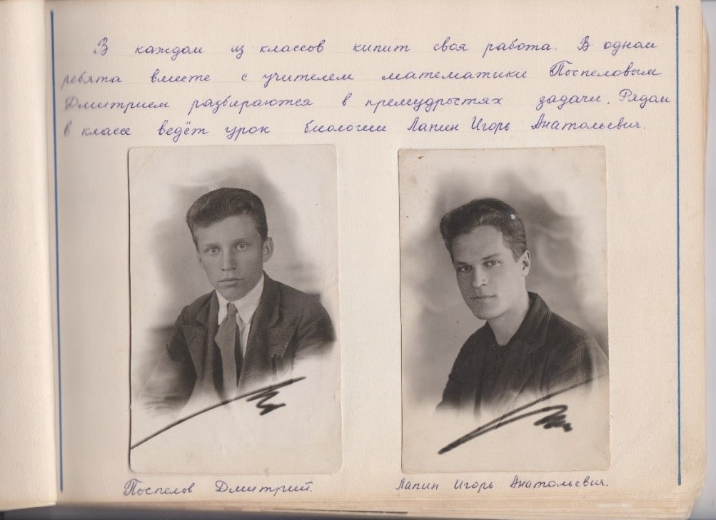 Корреспондент посетил уроки биологии учителя Лапина И. А. и учителя математики Поспелова Дмитрия (прим. так указано в школьном альбоме) [6].