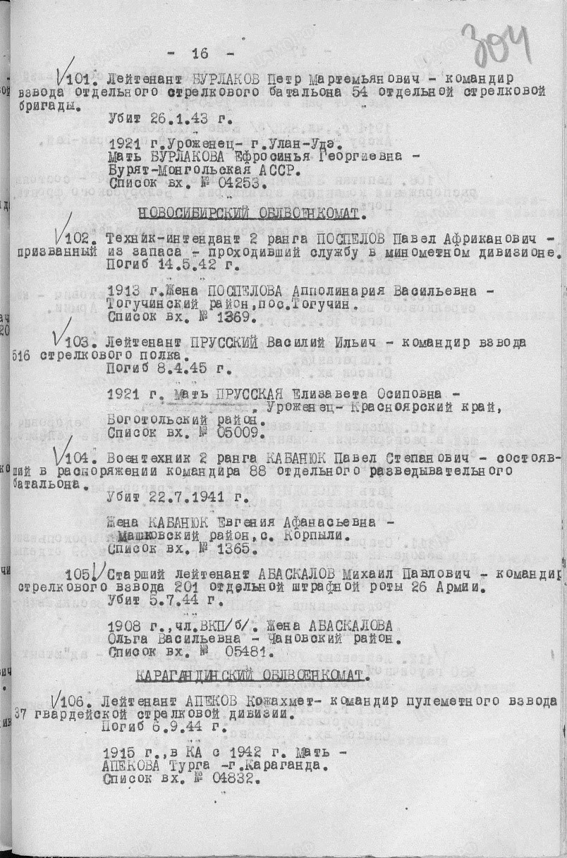3. Государственный Архив Новосибирской области (ГАНО) Ф. Р-1119, оп. 1, д.71, л.25,34.
