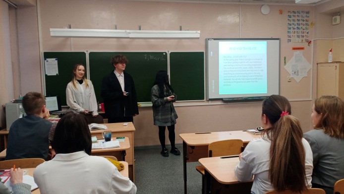 В начале третьей четверти учителем был проведен урок (по обновленным ФГОС), перед которым обучающимся была выдана технологическая карта с обозначенными целями и задачами урока. В конце урока был проведен анализ для более полного понимания учащимися того, на каком этапе урока реализуются те или иные задачи. Учащиеся также были ознакомлены со структурой урока по требованием обновленных ФГОС.